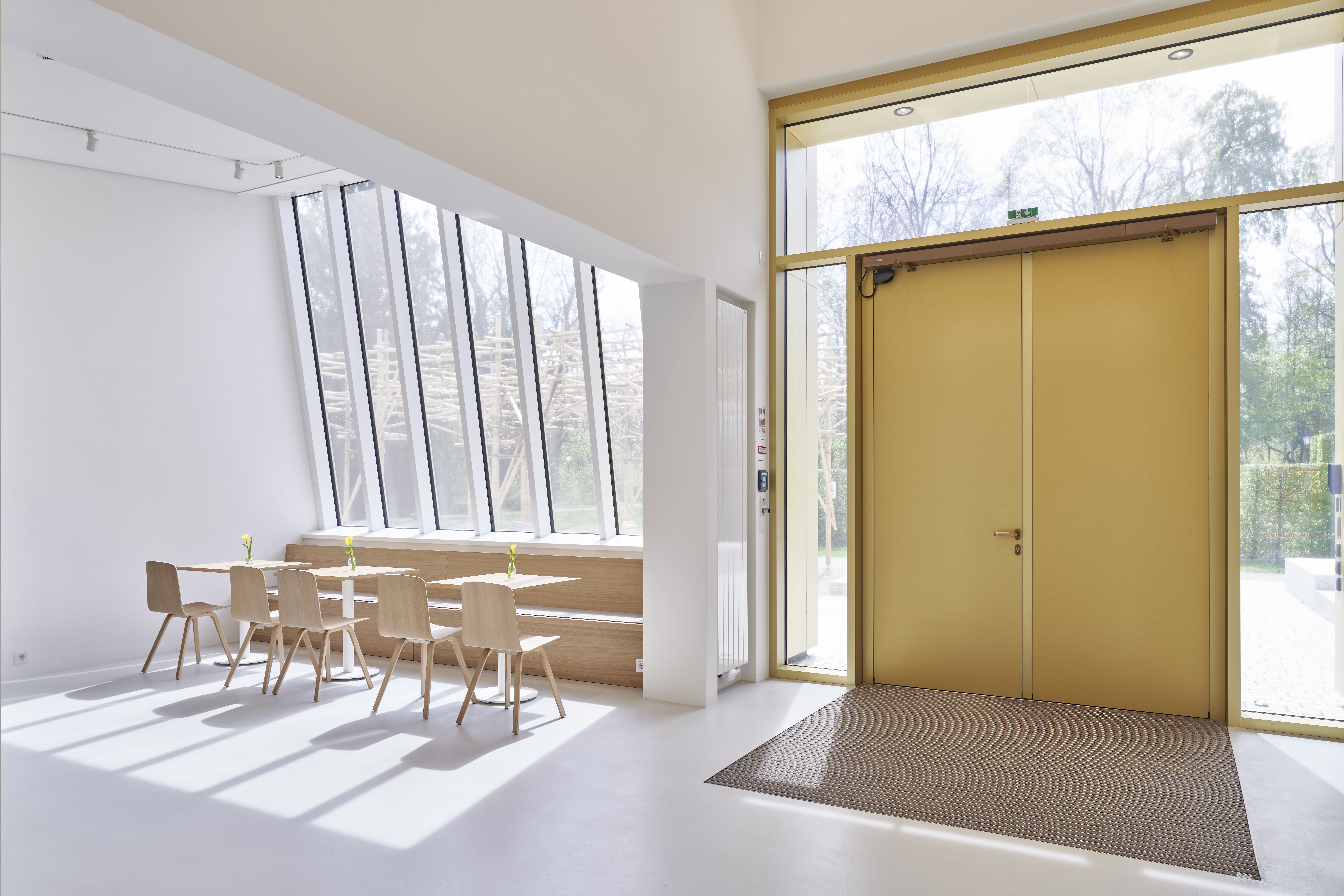As part of the comprehensive renovation of the Kallmann Museum in Ismaning, Germany, the entrance area and café were also redesigned – with special attention to light, transparency, and thermal comfort.
